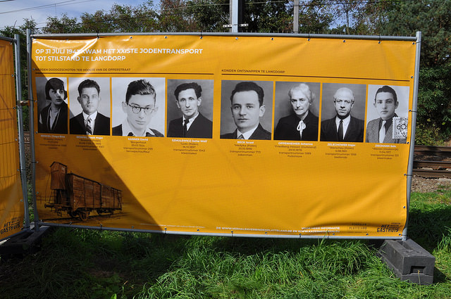 Op 31 juli 1943 werden in de Dossinkazerne 1553 Joden in beestenwagens geladen. Het XXIste konvooi, het op twee na grootste, zou in tegenstelling tot de andere konvooien overdag rijden en een alternatief traject volgen: deze spoorlijn Aarschot-Hasselt. Hier, ter hoogte van de Opperstraat in Langdorp konden acht Joden ontsnappen. Heel gewone mensen zoals u en ik – een bediende, naaisters, kleermakers, een chauffeur, een zakenman, een huisvrouw. Vier van hen werden hier aan de sporen door de bewakers doodgeschoten en later begraven op het kerkhof aan de Sint-Pieterskerk, vier anderen konden door lokale hulp ontkomen. Meer dan 97% van de gedeporteerden werd bij aankomst in Auschwitz om het leven gebracht. Van de 778 mannen en 775 vrouwen van dit konvooi, waaronder 174 kinderen, waren bij de bevrijding van de kampen in mei 1945 nog 44 mensen in leven.